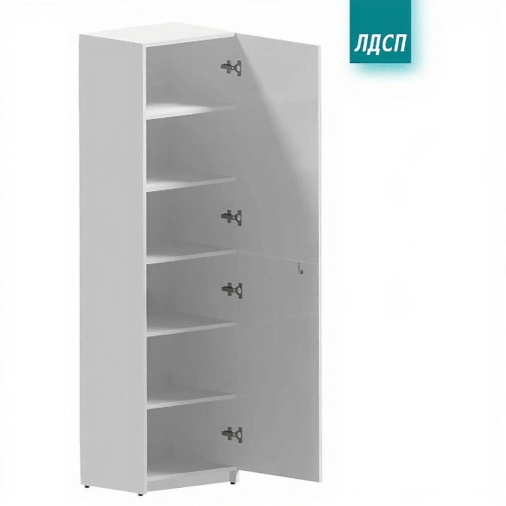 • Шкаф медицинский двухсекционный одностворчатый с 2 полками (ЛДСП), в каждой из секций и 2 дверцами (ЛДСП);