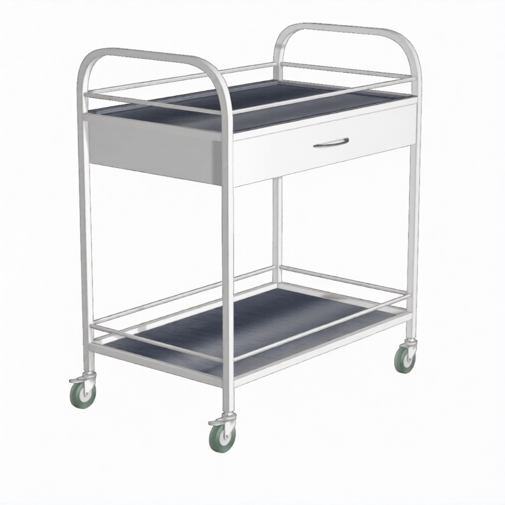 Стол манипуляционный с ограждением (ящик) СИо-1я (каркас белый) применяется для размещения на нем инструмента, материалов, медикаментов, в том числе применяемых в стоматологической практике, в кабинетах врачей, перевязочных, операционных, на постах медицинских сестер в отделениях больниц, в клиниках, поликлиниках и других медицинских учреждениях.