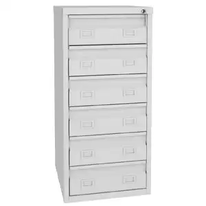Шкаф картотечный FB-6 — это надежное и функциональное решение для хранения файлов и документов формата А5 или А6, а также трудовых книжек. Модель оснащена усиленными телескопическими направляющими выдвижных ящиков и рассчитана на 6 ящиков.