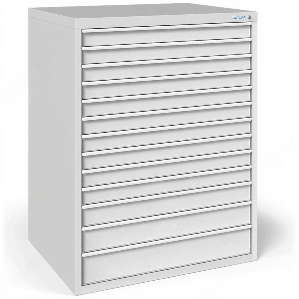 - Большая вместимость для рабочего и архивного хранения — тринадцать выдвижных металлических планшетов позволяют систематизировать и хранить значительный массив чертежей формата А1 (594x841 мм). Это оптимальное решение для организации отраслевого архива, коллекции текущих проектов подразделения или учебных материалов целого курса.