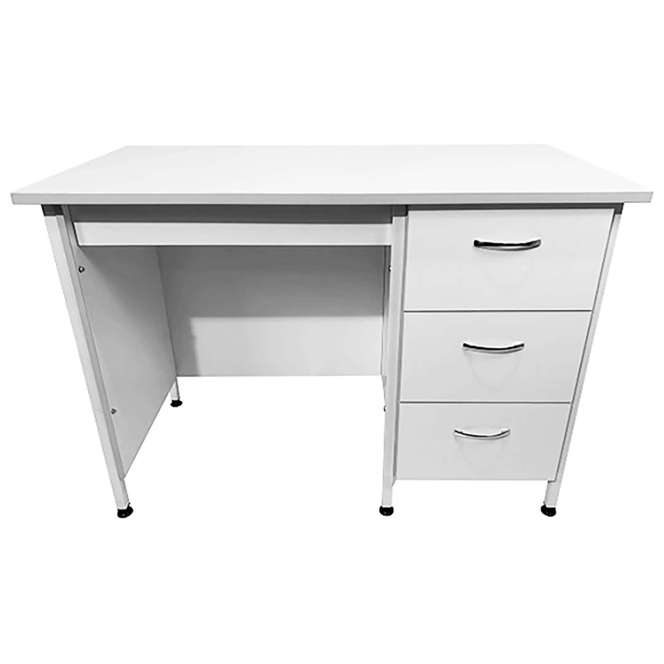 Стол лабораторный СЛ 12.010 (белый) — это функциональное и стильное решение для организации рабочего пространства сотрудников в лабораториях и медицинских учреждениях. Модель оснащена тумбой с тремя выдвижными ящиками. Каркас выполнен из стального профиля, столешница из ЛДСП толщиной 22 мм.