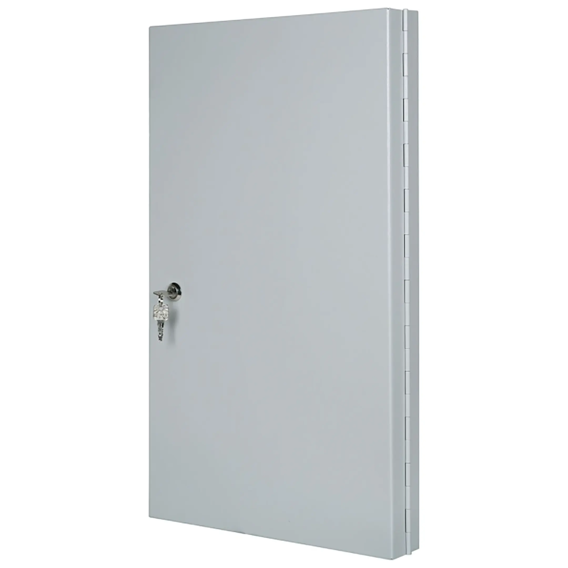 - Универсальность и удобство использования — навесная или напольная конструкция позволяет разместить ключницу в удобном и контролируемом месте (пост охраны, диспетчерская, административная стойка). Комплектные брелки с кольцами обеспечивают удобное извлечение и возврат ключей.
