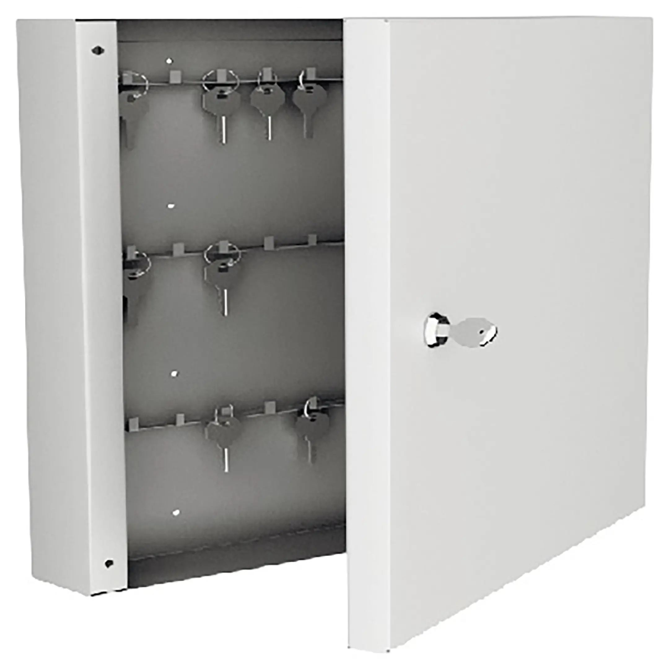 - Идеальный размер для большинства типовых объектов — ключница рассчитана на хранение 60 ключей, что является оптимальным объемом для небольших бизнес-центров, офисов, гостиниц, учебных заведений или медицинских клиник. Ее габариты позволяют удобно разместить шкаф на стене, не загромождая полезное пространство поста охраны или административной стойки.