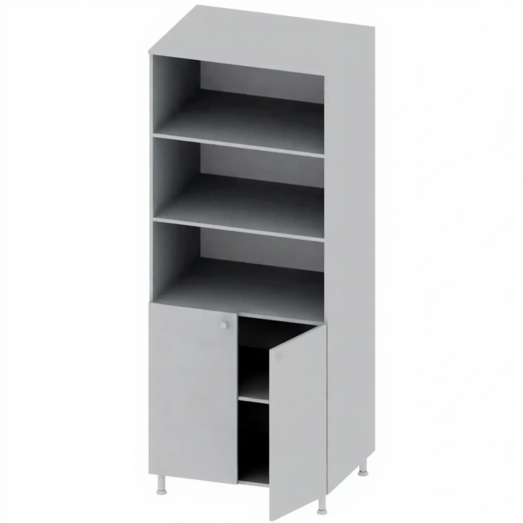 - Полуоткрытая конструкция — сочетание открытых секций для быстрого доступа к часто используемым документам и закрытых для хранения материалов, требующих защиты.