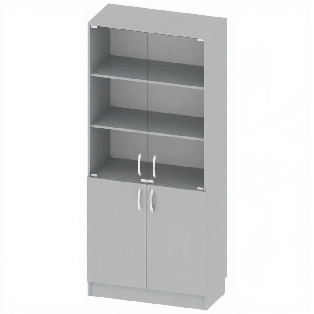 Шкаф комбинированный со стеклом СТЕ-ШП-6 — это функциональное и эстетичное решение для хранения книг, документов, экспонатов и других предметов в образовательных учреждениях, библиотеках, офисах и административных помещениях. Модель сочетает в себе закрытые отделения из ЛДСП и стеклянные секции, обеспечивая удобство хранения и возможность демонстрации содержимого.