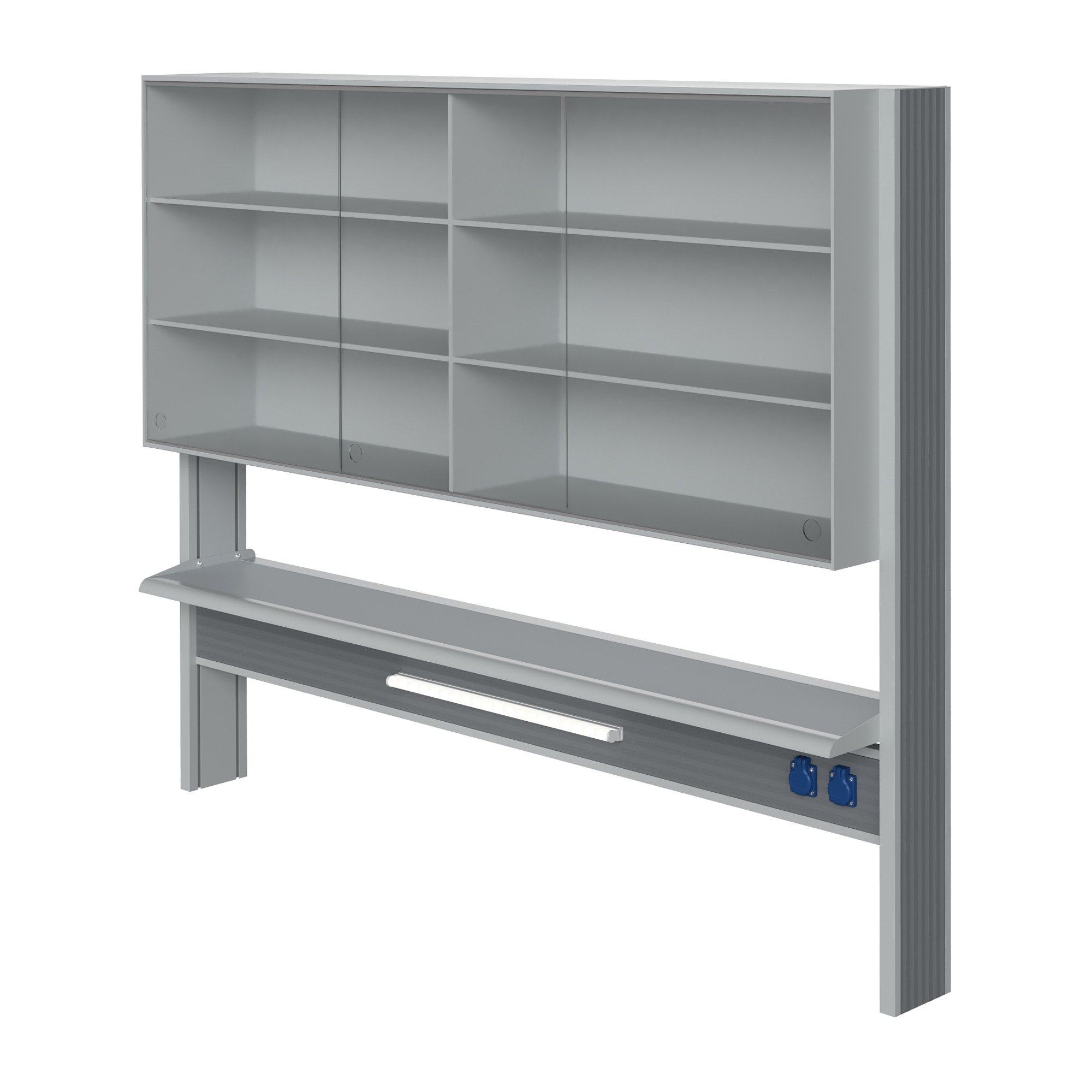 Технологический стеллаж со шкафом 750 мм для пристенного стола Mod. 1800 ТСПШ-75 — это специализированное лабораторное оборудование, устанавливаемое на пристенные столы и предназначенное для хранения лабораторной посуды, приборов, реактивов и принадлежностей. Модель оснащена вместительным шкафом с тремя раздвижными стеклянными дверями, тремя полками, блоком электророзеток повышенной защиты и светодиодным светильником для местного освещения рабочей зоны.