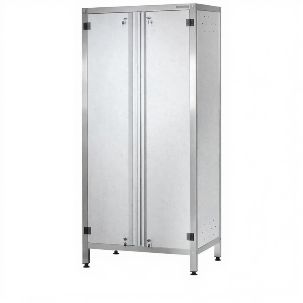 - Гибкость в оснащении и безопасности — базовая комплектация включает две усиленные полки. Отсутствие в комплекте замков (без к-та замков) предоставляет свободу выбора: можно установить подходящий запорный механизм — от простой защелки до надежного врезного замка — в зависимости от требований к безопасности на объекте.