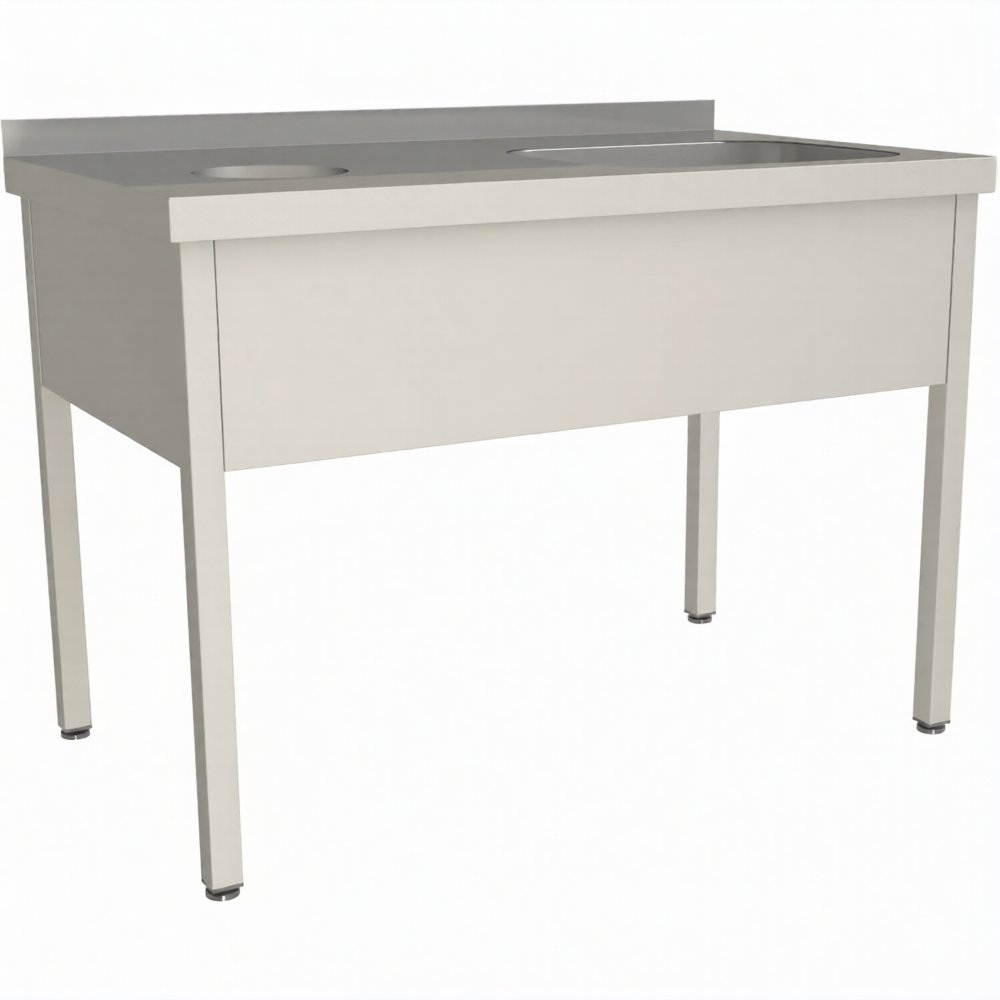 Стол для сбора пищевых отходов с ванной и бортом СПОВЦ/1-12/6-БО-П предназначен для применения на предприятиях общественного питания любого формата, пищевых производствах и пищеблоках.