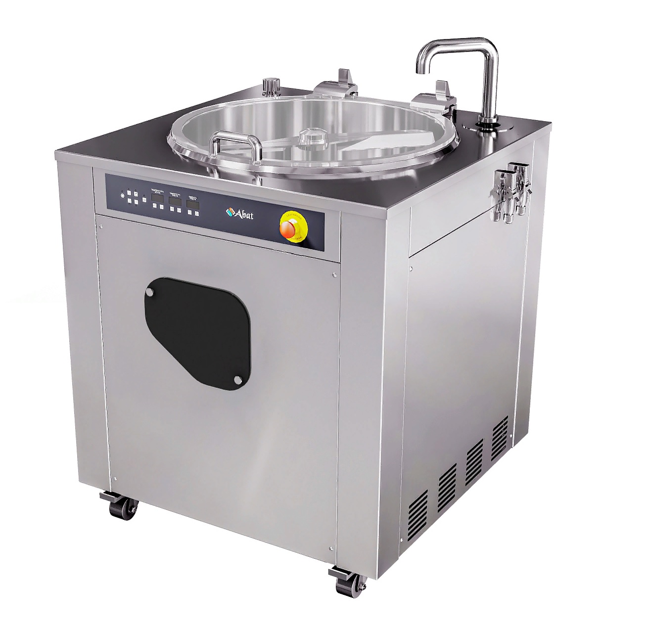 Котлы оснащены миксером, который легко снимается для очистки. Все детали котлов выполнены из аустенитной нержавеющей стали. Для удобства транспортировки котлы оснащены колесными опорами с ножным тормозом.