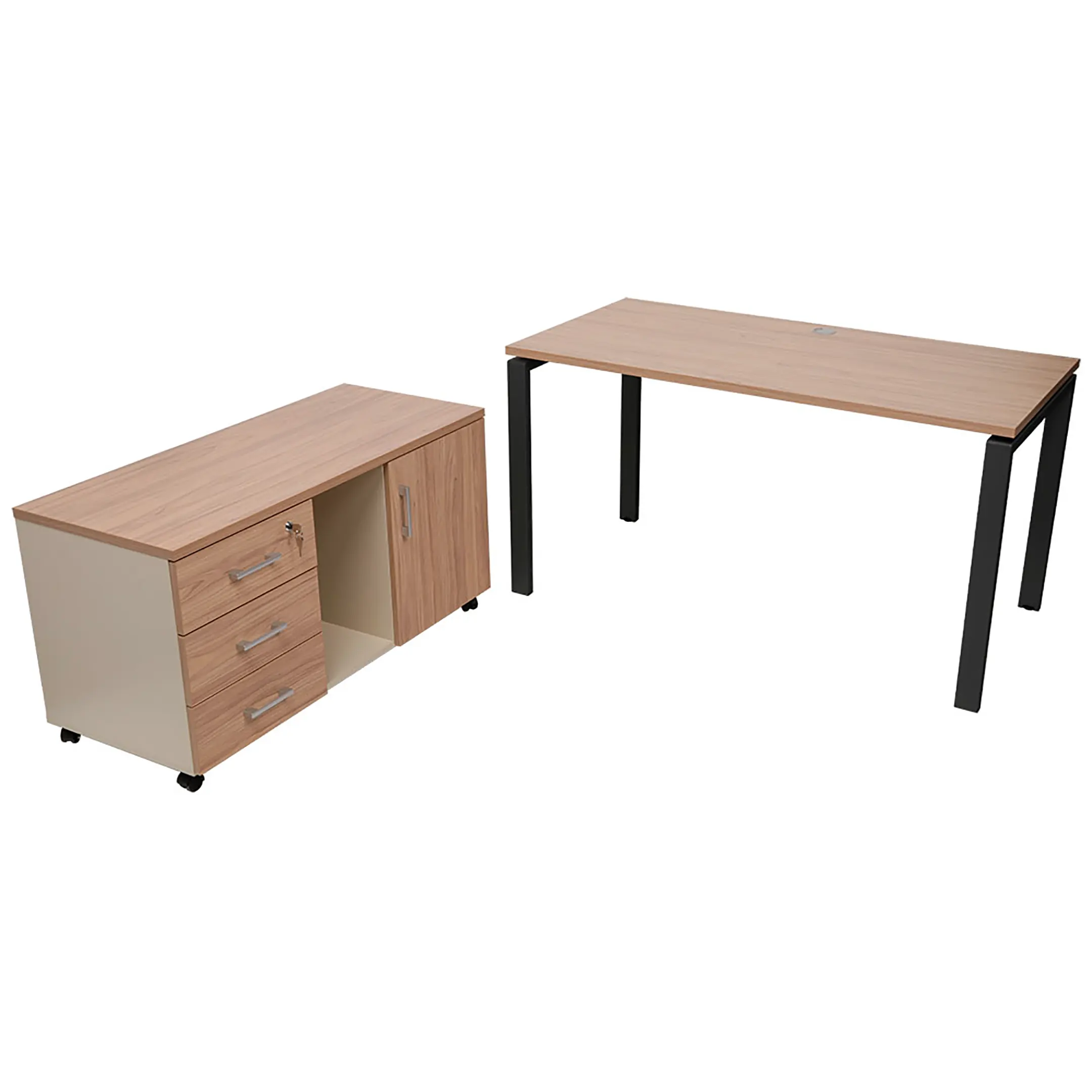 • верхний ящик тумбы снабжен замком и оснащен пластмассовым лотком для канцелярских принадлежностей;