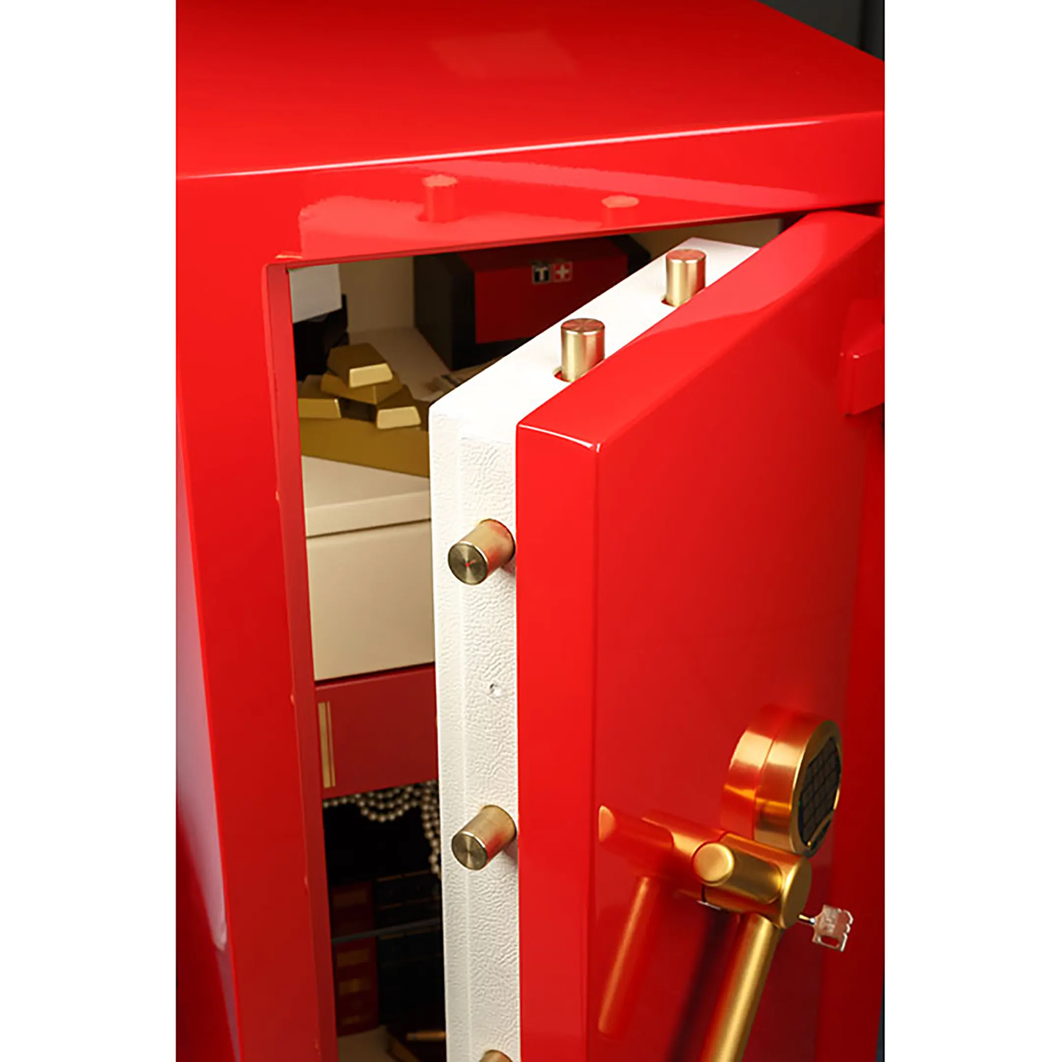 • комплектуется двумя замками: ключевым KABA MAUER, производства Германии, и электронным кодовым – PS-600 c эксклюзивным покрытием «GOLD»;