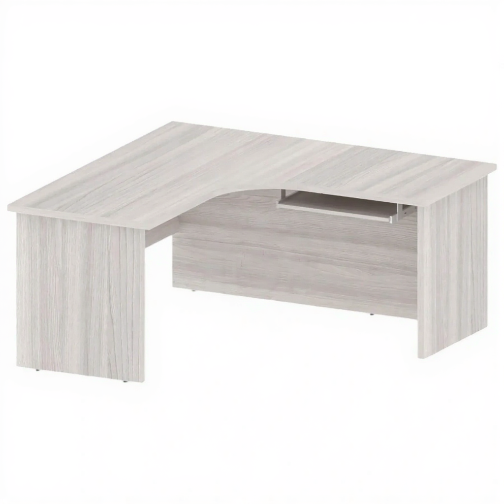 Стол письменный угловой ОФ-СТ-184, Ясень Шимо Светлый — это эргономичное рабочее место с угловой конструкцией для организации комфортных рабочих зон в офисах, административных учреждениях и учебных заведениях. Угловая форма стола позволяет оптимально использовать пространство помещения, предоставляя просторную рабочую поверхность. Благородная текстура "Ясень Шимо Светлый" с выразительным природным рисунком создает теплую и эстетически привлекательную атмосферу, гармонично вписываясь в современные интерьеры.
