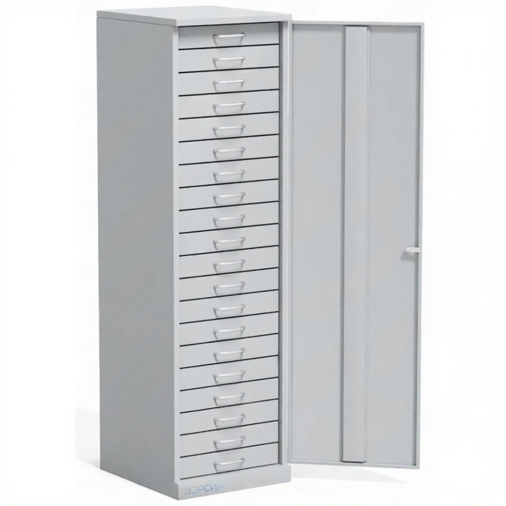 Шкаф для ключей (20 ящиков, 1 дверь) — это профессиональное и функциональное решение для организованного хранения, систематизации и учета значительного количества ключей или мелких предметов в едином защищенном пространстве. Модель представляет собой напольный металлический шкаф, где конфигурация «20 ящиков, 1 дверь» указывает на его структуру: одна общая запирающаяся секция, внутри которой расположены двадцать индивидуальных выдвижных ящиков для детального распределения. Конструкция предназначена для создания строгого порядка, обеспечения сохранности и эффективного управления ключевым хозяйством в условиях служб безопасности, диспетчерских, гостиниц и административных учреждений.