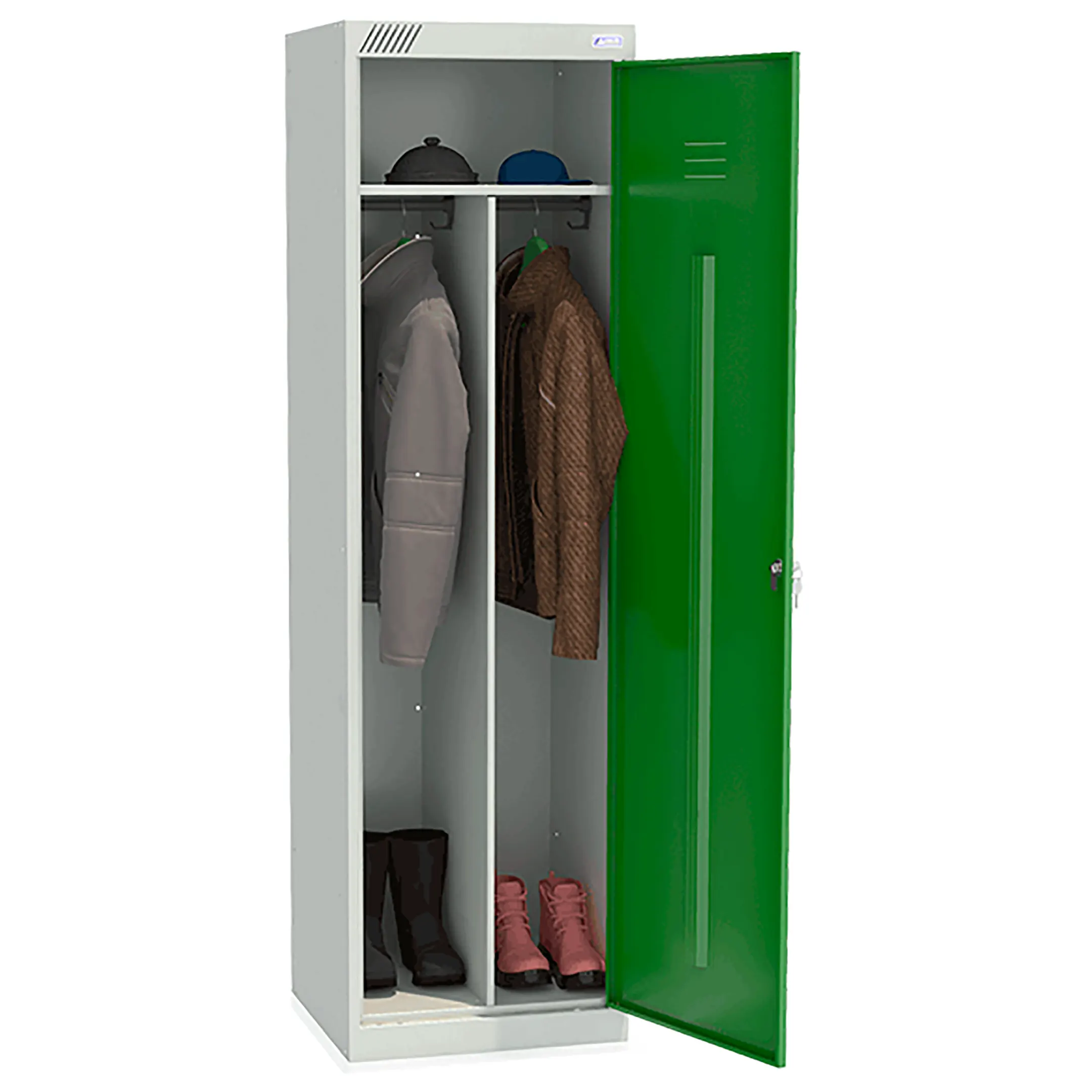 Металлический шкаф для одежды ШРЭК-21-530 предназначен для хранения сменной одежды в офисных, производственных и спортивных помещениях.