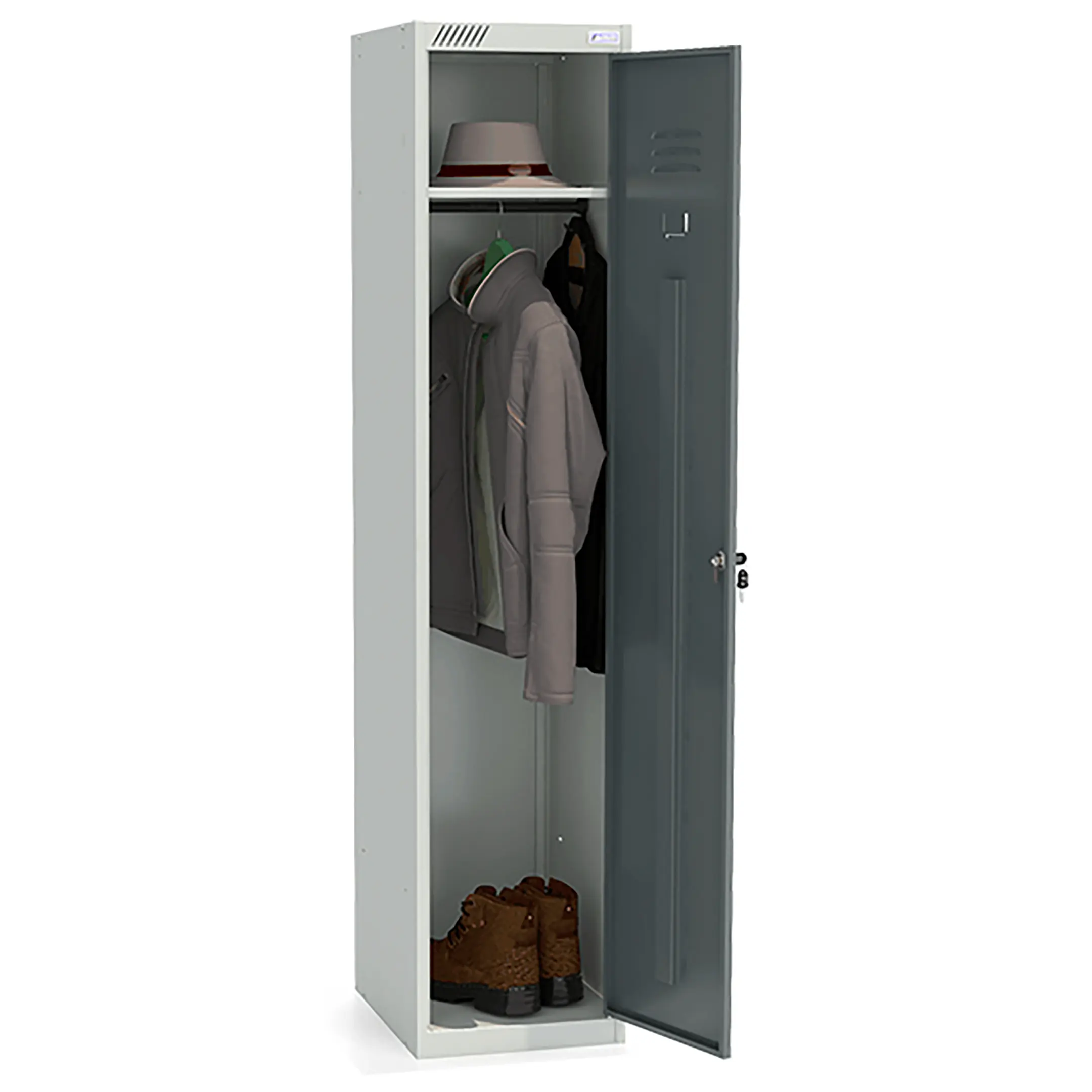 Металлический модульный шкаф для одежды ШРС-11-400 используется для хранения сменной одежды в офисных, производственных, спортивных помещениях.