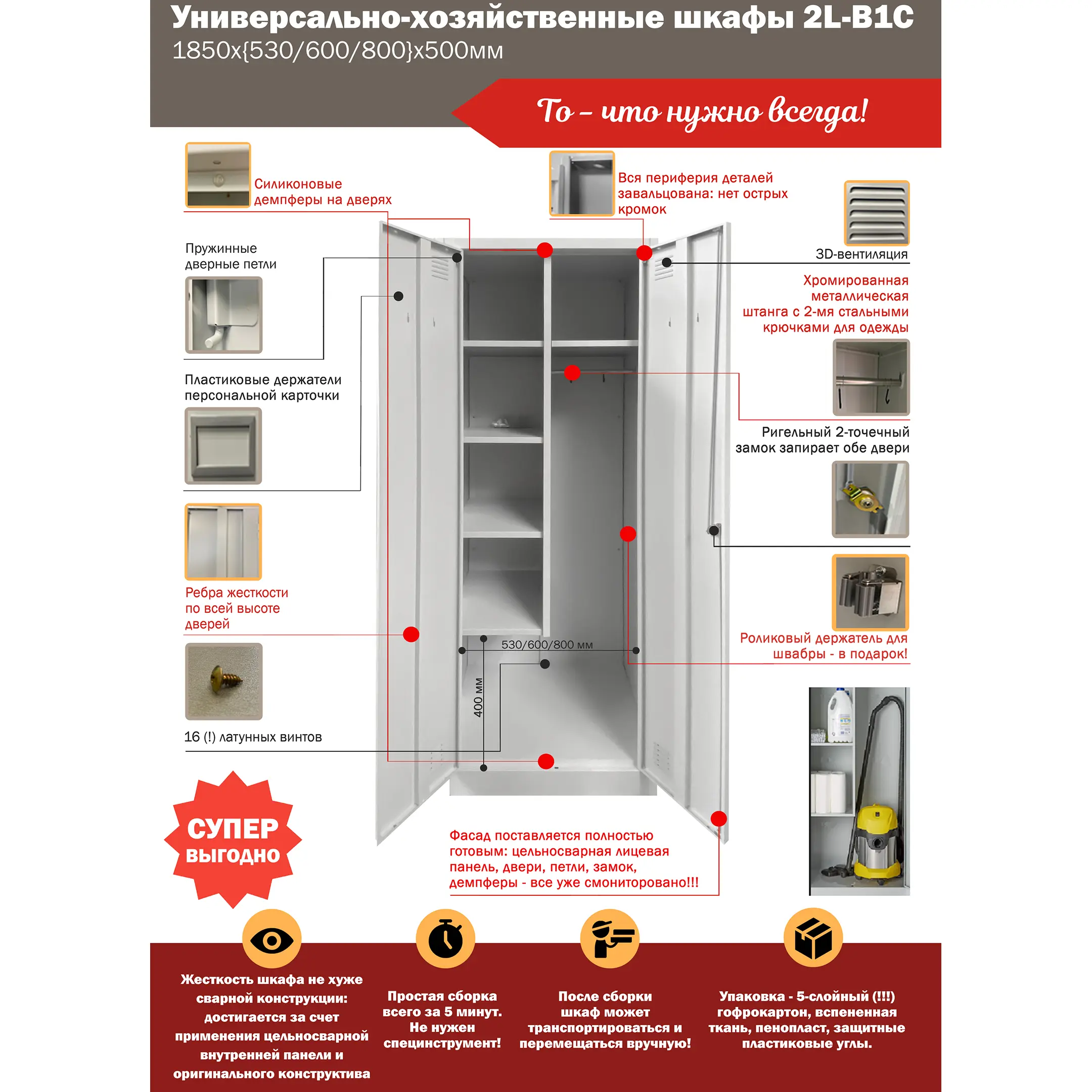 Преимущества шкафа хозяйственного 2L-B1C