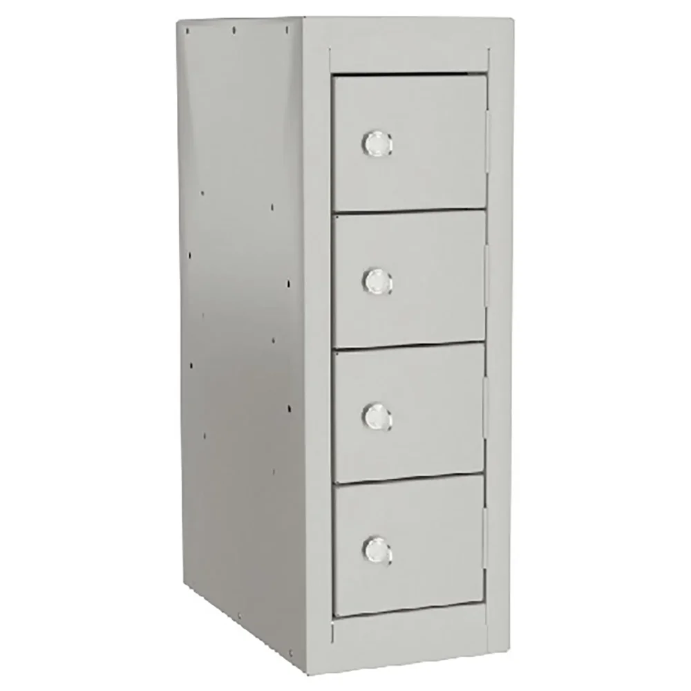 - Максимальная компактность и экономия пространства — шкаф занимает минимум места, предоставляя при этом 4 индивидуальные запирающиеся ячейки. Это идеальное решение для размещения на рабочем столе, прилавке, в кабинете руководителя или у стойки администратора, не загромождая интерьер.