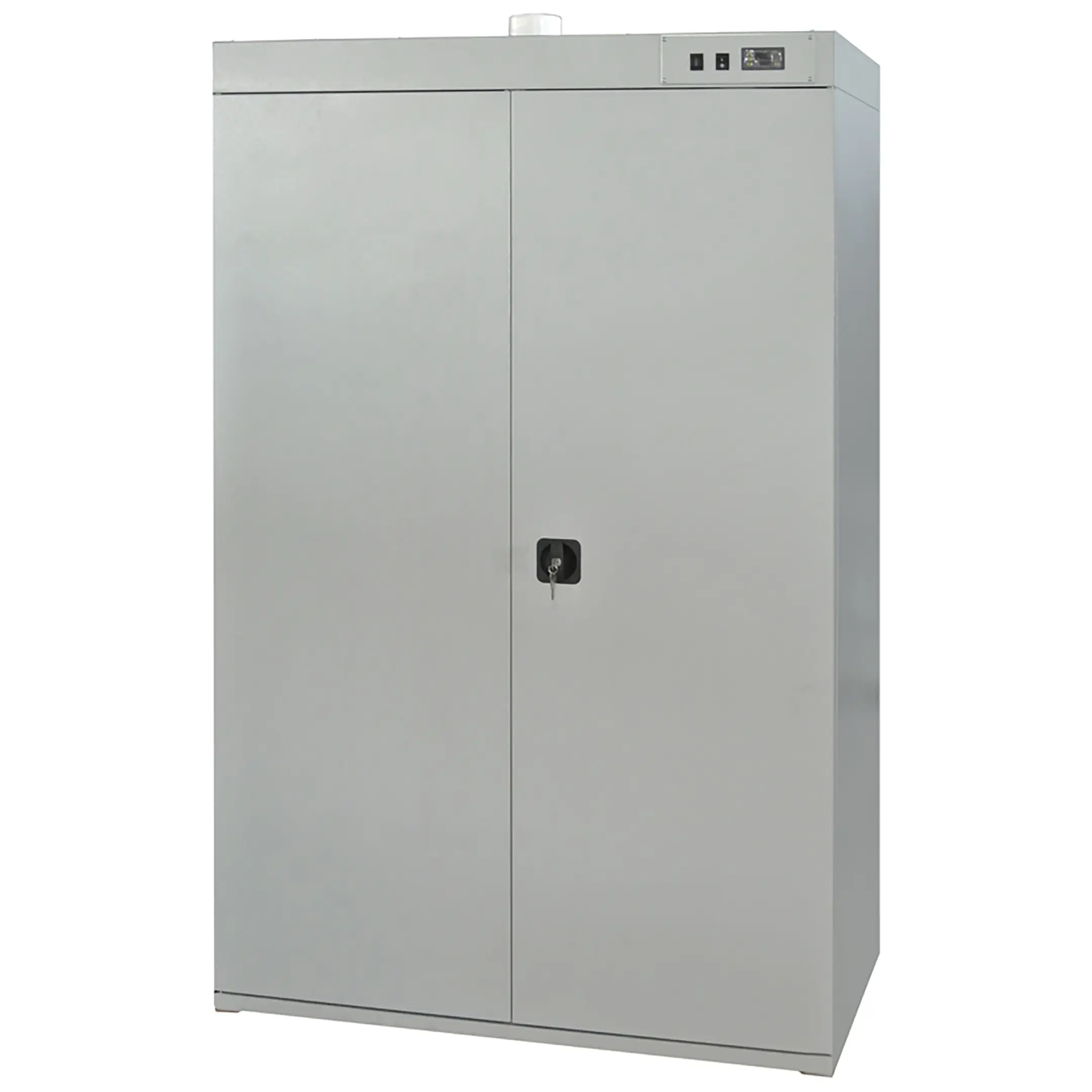 - Универсальность и компактность — шкаф предназначен для одновременной сушки как одежды (спецодежды, спортивной формы), так и обуви. Его компактные габариты делают модель идеальной для помещений с ограниченным пространством, таких как небольшие раздевалки, кабинеты персонала или учебные классы.